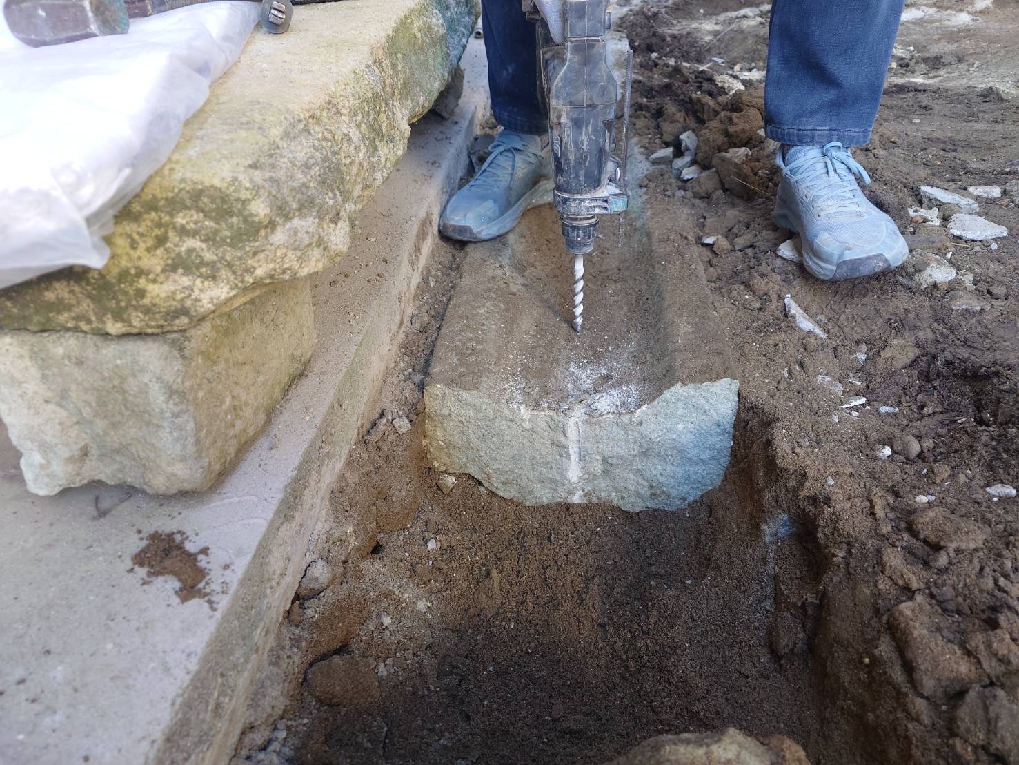 石を割る作業には、**「セリ矢(せりや)」**と呼ばれる昔ながらの道具を使います。ドリルで穴をあけ、そこへセリ矢を差し込み、少しずつ力を加えていくことで、石は自然な割れ目に沿ってきれいに割れていきます。一気に割るのではなく、石の状態を見極め...